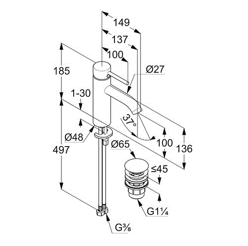 Смеситель для раковины KLUDI BOZZ WHITE однорычажный, с донным клапаном, белый матовый 382885376