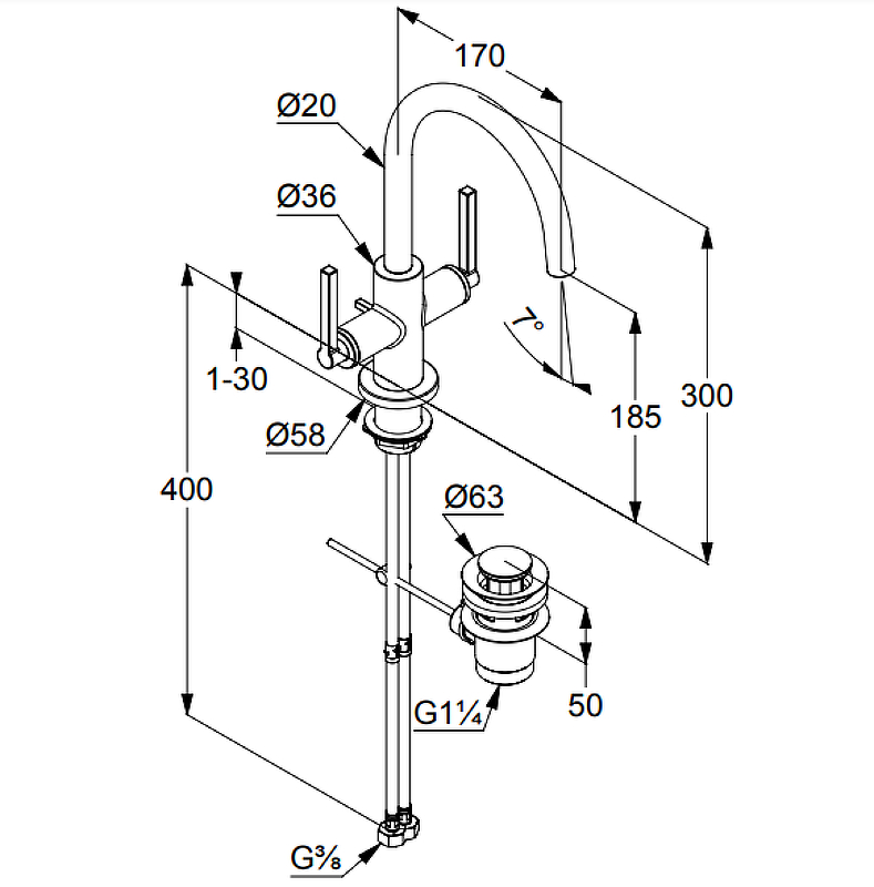 Поворотный излив с опцией блокировки (150/360 градусов).