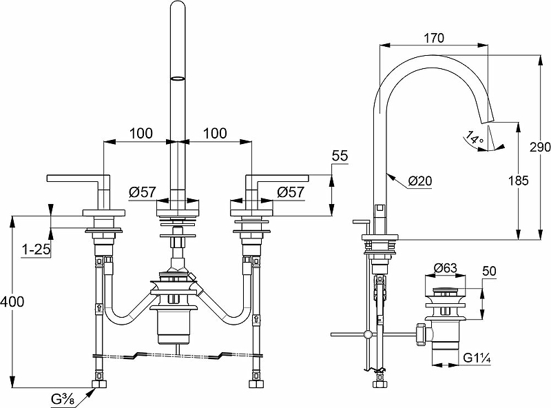 Поворотный излив с опцией блокировки (150/360 градусов).