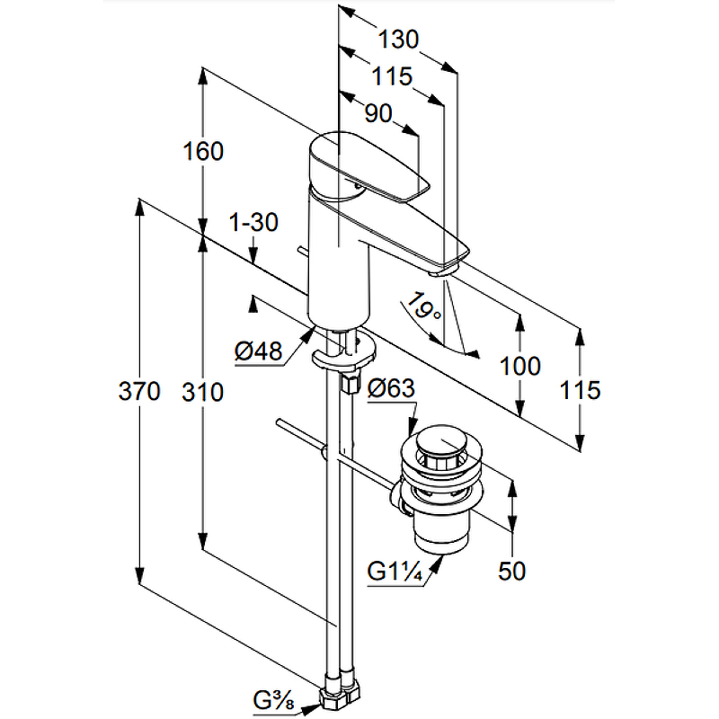 Стандарт подводки: гибкий G 3/8.