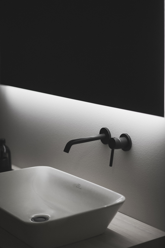 CERALINE Настенный смеситель для раковины, для монтажа со встраиваемым комплектом A1313NU (заказывается дополнительно), трубчатый излив 180 мм, аэратор Cashe, картридж 28 мм FirmaFlow с функцией HWTC, металлическая рукоятка с индикаторами горячей / холодной воды. Внимание: для арт.A6938, произведенного до 2021г., требуется встраиваемая часть A5948NU