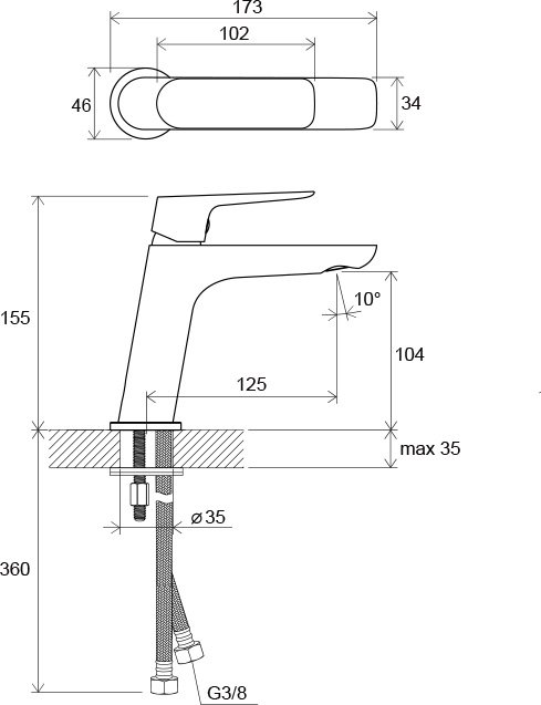 – соединительные шланги: гибкий 450 мм, диаметр G3/8