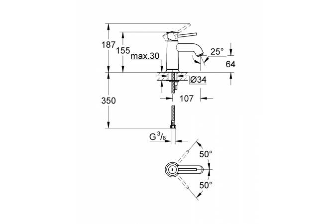 Смеситель однорычажный для раковины BauClassic, гладкий корпус, хром 23162000