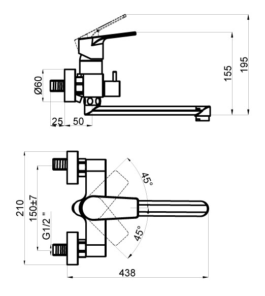 Смеситель AZARIO TREYA для ванны с длинным изливом, хром AZ-15681721