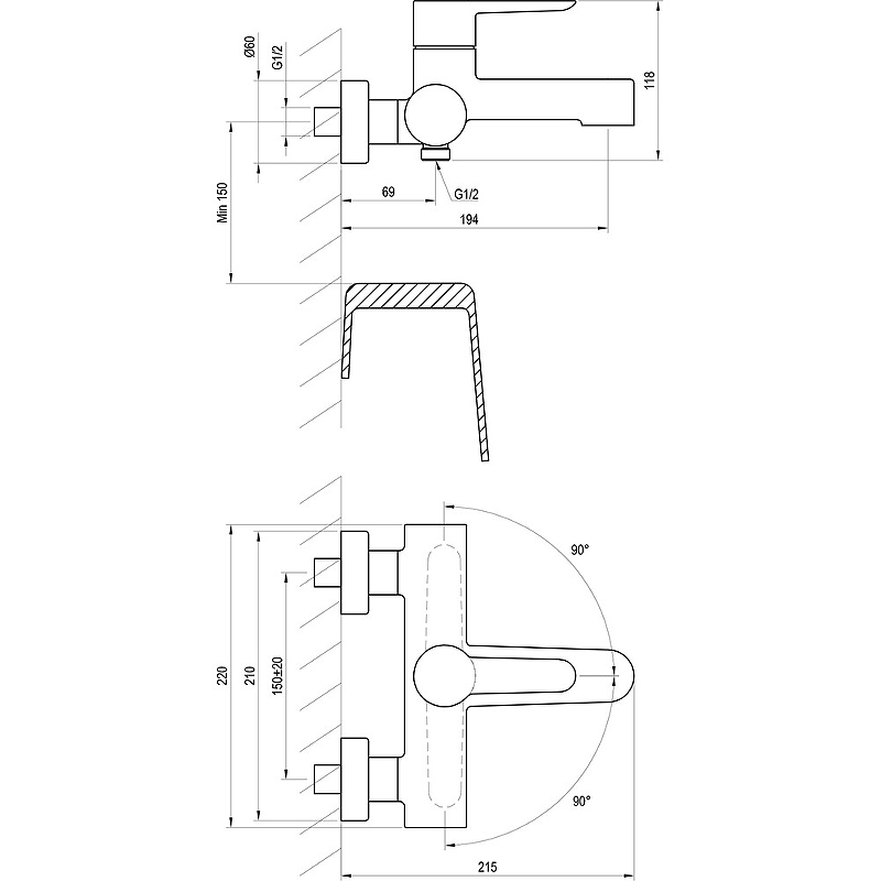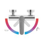 Смеситель для ванны Puri имеет специальный поворотный картридж с функцией переключения ванна/душ. У этого смесителя не регулируется поток воды, он постоянен и зависит от давления горячей и холодной воды. Рычаг регулирует только температуру воды.