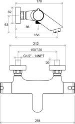 – межосевой размер смесителя : 150 мм