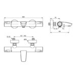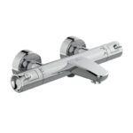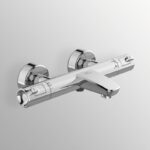 Ceratherm T50 Настенный термостатический смеситель для ванны/душа, монтаж на стандартных эксцентриках, термостатический картридж IS, новая технология, затворы на керамических дисках G1/2 180˚, технология “Cool body” (“Холодный корпус”), металлические рукоятки с ограничителями температуры (40ºC) и потока воды (50%), встроенный обратный клапан, автоматическое переключение, аэратор Perlator