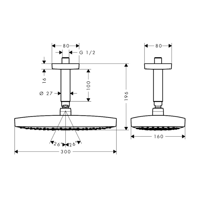 Верхний душ Hansgrohe Raindance Select E 300 2jet 26608400
