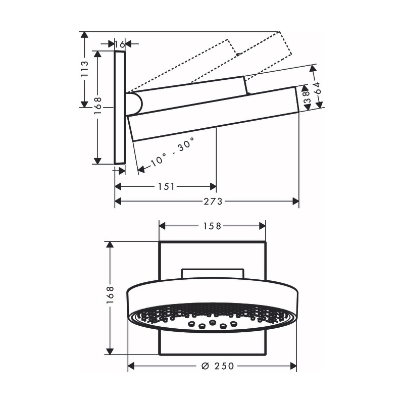 Верхний душ Hansgrohe Rainfinity 250 3jet, с настенным креплением, хром 26232000