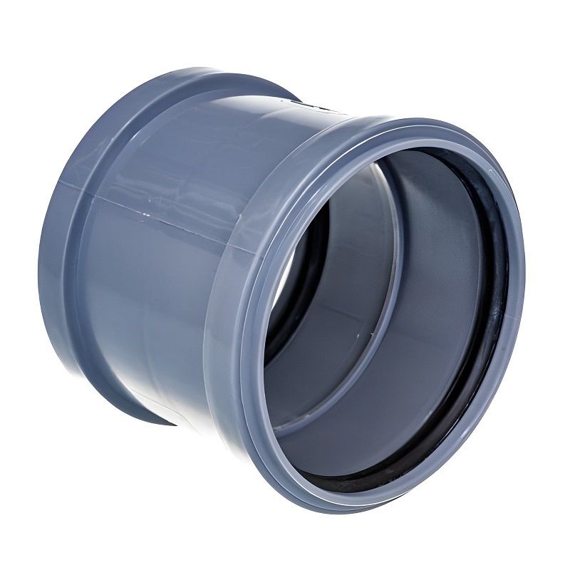 Муфта канализационная Ростурпласт для соединения двух безраструбных труб диаметром 110 мм при монтаже систем внутренней канализации.