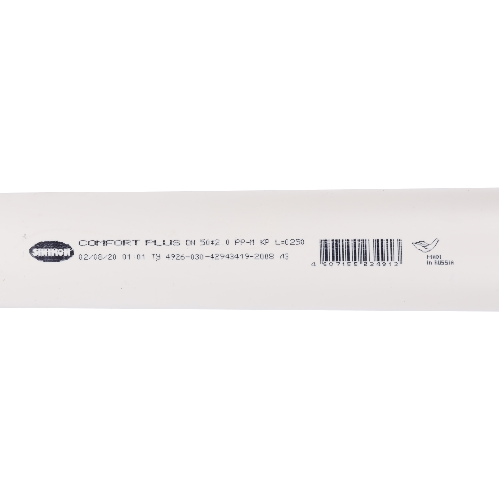 Труба канализационная Sinikon COMFORT PLUS DN50 x 2,0 PN1 L0,25м PP-H, белая, шумопоглощающая 500043.K