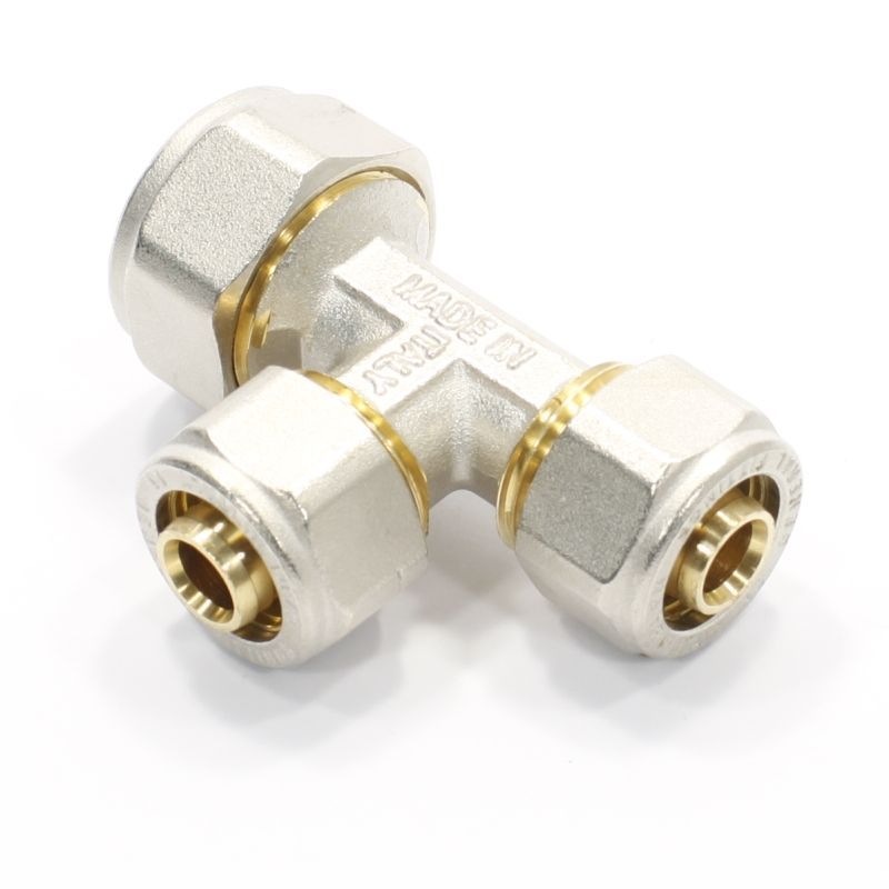 Тройник 20-16-16, General Fittings 5300 13, обжим-обжим, латунь (никель) 530013N665656A