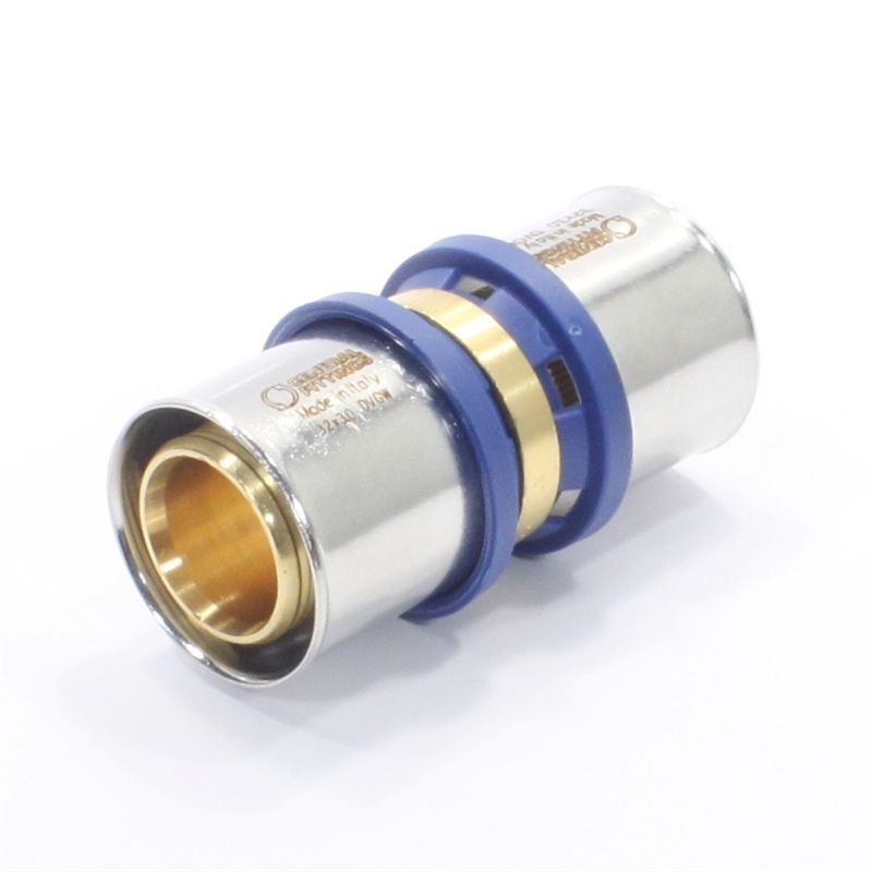 Геометрия фитинга обеспечивает оптимальное соединение между трубой и фитингом после обжима, а смотровые окна на фиксаторах втулки позволяют проверить правильность установки трубы. Два уплотнительных кольца обеспечивают герметичность и надежность продукта с течением времени.