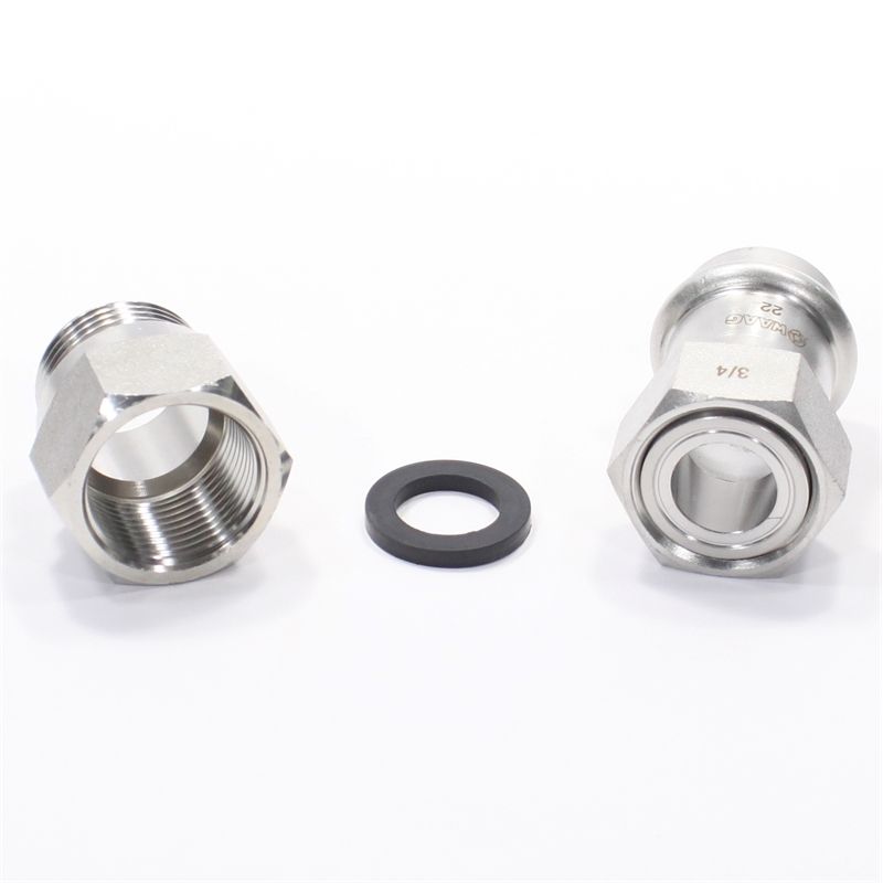 Фитинг изготовлен из стали AISI 304. Материал уплотнения – эластомер EPDM. Уплотнение EPDM, установленное в пресс-фитинг WAAG оснащено уникальным индикатором прессования, которое показывает неопрессованное соединение. Такое соединение будет не герметично (протекать) под давлением от 0,1 до 6,0 бар, поэтому при установке необходимо убедиться, что труба полностью вставлена в фитинг.