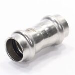 Двухраструбная пресс-муфта из нержавеющей стали предназначена для соединения тонкостенных стальных труб в системах водоснабжения, отопления, других инженерных и технологических установках с рабочей температурой до 120 °С. Номинальное давление – 16 бар.