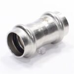 Двухраструбная пресс-муфта из нержавеющей стали предназначена для соединения тонкостенных стальных труб в системах водоснабжения, отопления, других инженерных и технологических установках с рабочей температурой до 120 °С. Номинальное давление – 16 бар.