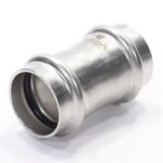 Двухраструбная пресс-муфта из нержавеющей стали предназначена для соединения тонкостенных стальных труб в системах водоснабжения, отопления, других инженерных и технологических установках с рабочей температурой до 120 °С. Номинальное давление – 16 бар.