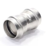 Двухраструбная пресс-муфта из нержавеющей стали предназначена для соединения тонкостенных стальных труб в системах водоснабжения, отопления, других инженерных и технологических установках с рабочей температурой до 120 °С. Номинальное давление – 16 бар.