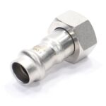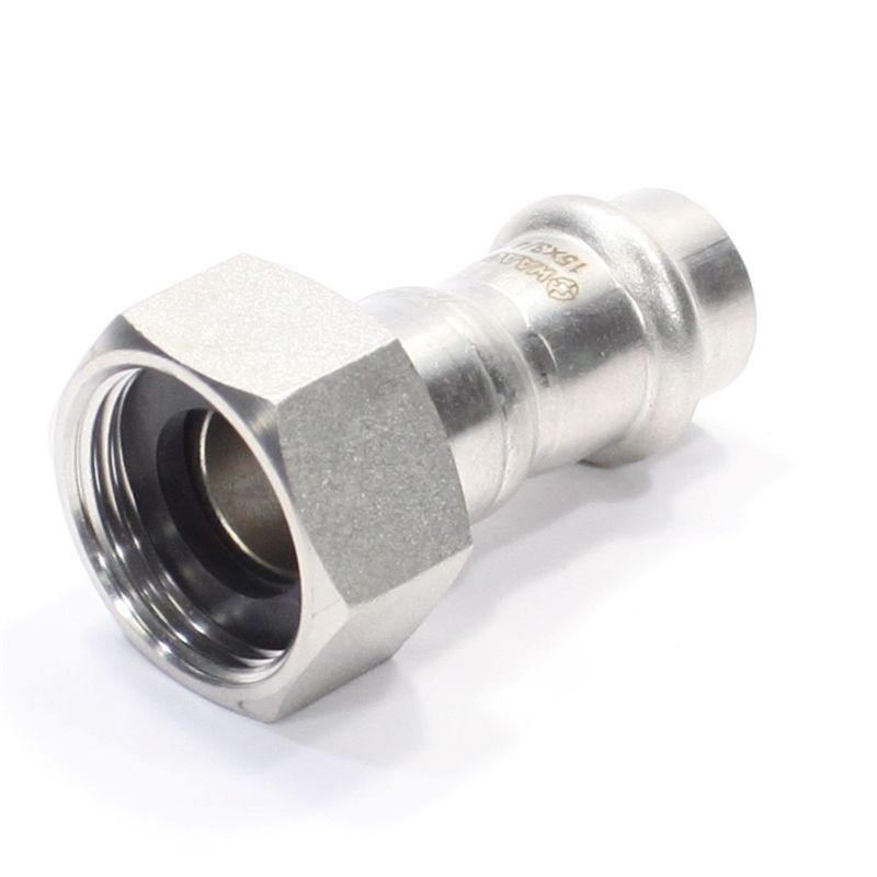 Пресс-фитинг из нержавеющей стали с накидной гайкой обеспечивает соединение тонкостенной стальной трубы c элементом системы, имеющим наружную резьбу. Область применения – трубопроводы водоснабжения, отопления, иные инженерные и технологические установки с рабочей температурой до 120 °С и давлением до 16 бар.