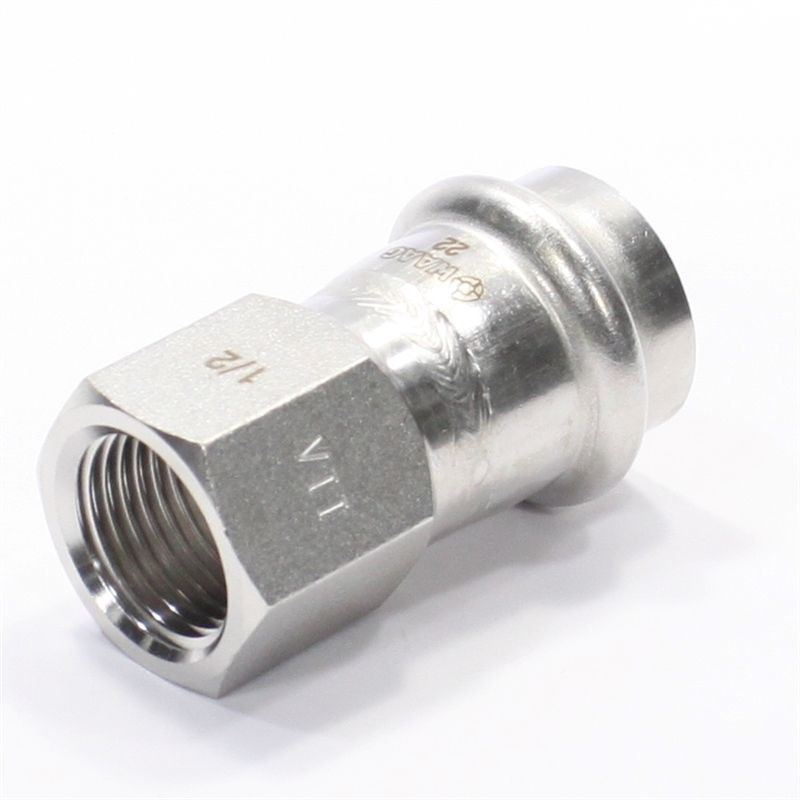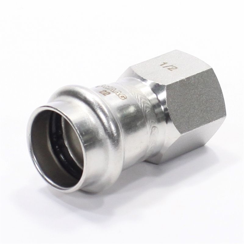 Пресс-фитинг из нержавеющей стали с внутренней резьбой обеспечивает соединение тонкостенной стальной трубы с резьбовым элементом монтируемой системы. Область применения – трубопроводы водоснабжения, отопления, иные инженерные и технологические установки с рабочей температурой до 120 °С и давлением до 16 бар.