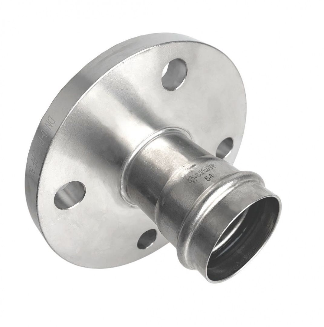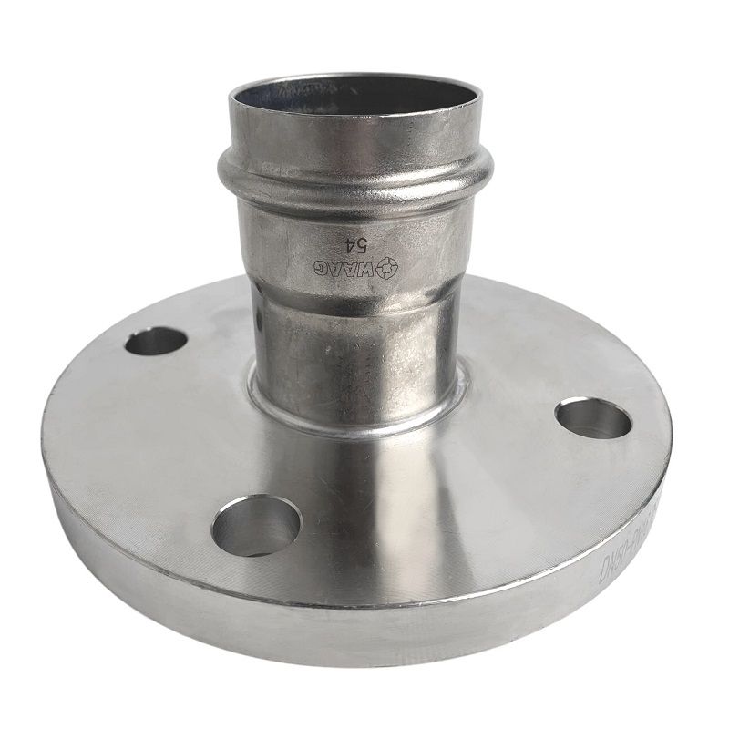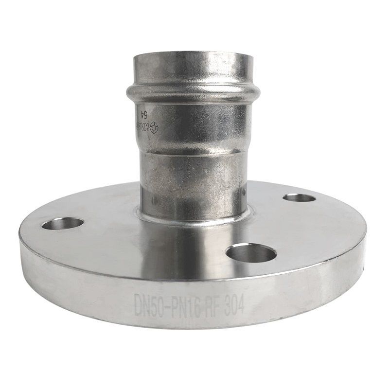 Пресс-фитинг из нержавеющей стали с переходом на фланец обеспечивает соединение тонкостенной стальной трубы с фланцевым элементом монтируемой системы. Область применения – трубопроводы водоснабжения, отопления, иные инженерные и технологические установки с рабочей температурой до 120 °С и давлением до 16 бар.