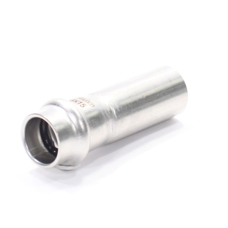 Фитинг обеспечивает при монтаже переход трубопровода с одного диаметра на другой. Достоинством бесштуцерных соединителей является малый коэффициент местного сопротивления (сужение канала практически отсутствует). Фитинг рассчитан на обжатие с помощью пресс-инструмента V-профиля.