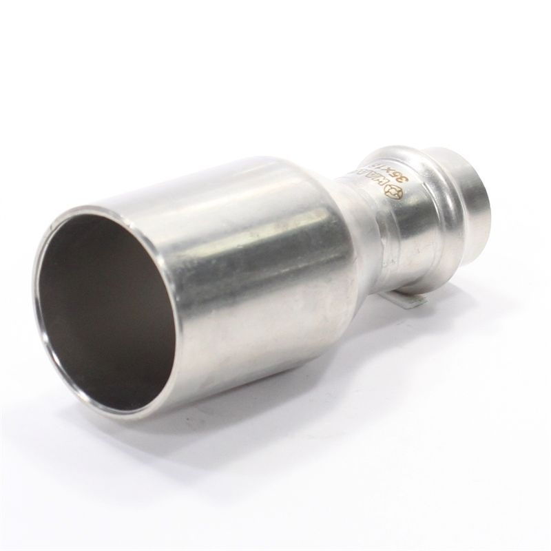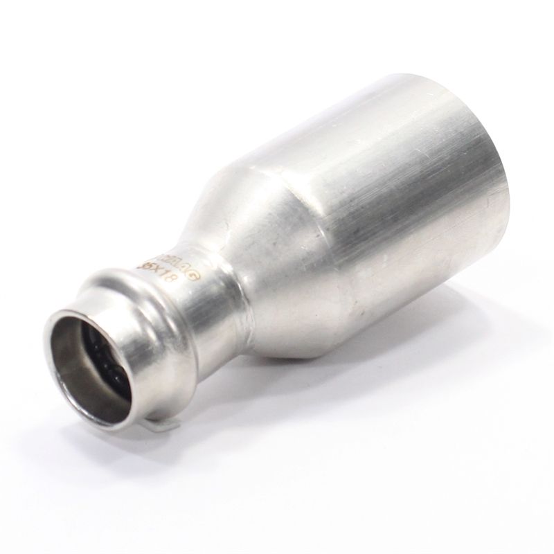 Фитинг обеспечивает при монтаже переход трубопровода с одного диаметра на другой. Достоинством бесштуцерных соединителей является малый коэффициент местного сопротивления (сужение канала практически отсутствует). Фитинг рассчитан на обжатие с помощью пресс-инструмента V-профиля.