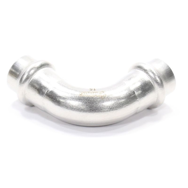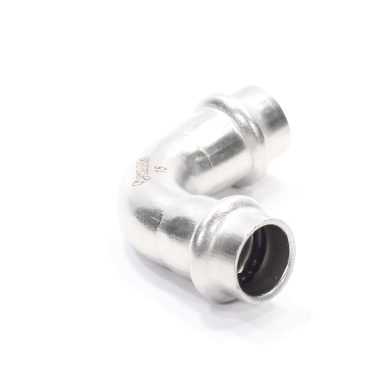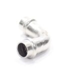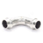 Двухраструбный пресс-угольник из нержавеющей стали обеспечивает соединение под углом 90° тонкостенных стальных труб систем водоснабжения, отопления, иных инженерных и технологических установок с рабочей температурой до 120 °С и давлением до 16 бар.