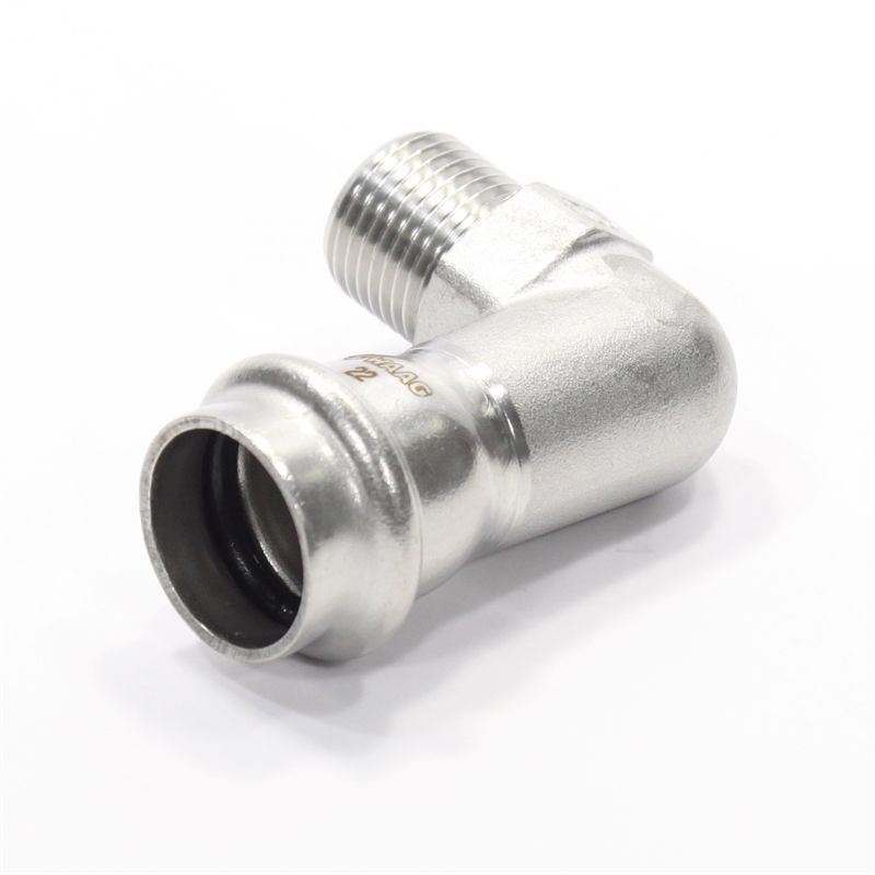 Отвод 90 22-1/2″, WAAG Heavy Inox, пресс-резьба, нар., сталь нержавеющая WG.953.I.002204