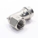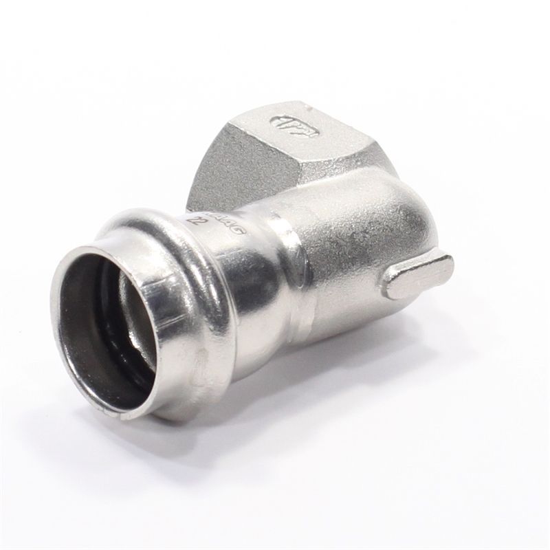 Пресс-угольник из нержавеющей стали с внутренней резьбой обеспечивает соединение тонкостенной стальной трубы с резьбовым элементом монтируемой системы под углом 90°. Область применения – трубопроводы водоснабжения, отопления, иные инженерные и технологические установки с рабочей температурой до 120 °С и давлением до 16 бар.