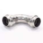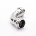 Двухраструбный пресс-угольник из нержавеющей стали обеспечивает соединение под углом 90° тонкостенных стальных труб систем водоснабжения, отопления, иных инженерных и технологических установок с рабочей температурой до 120 °С и давлением до 16 бар.