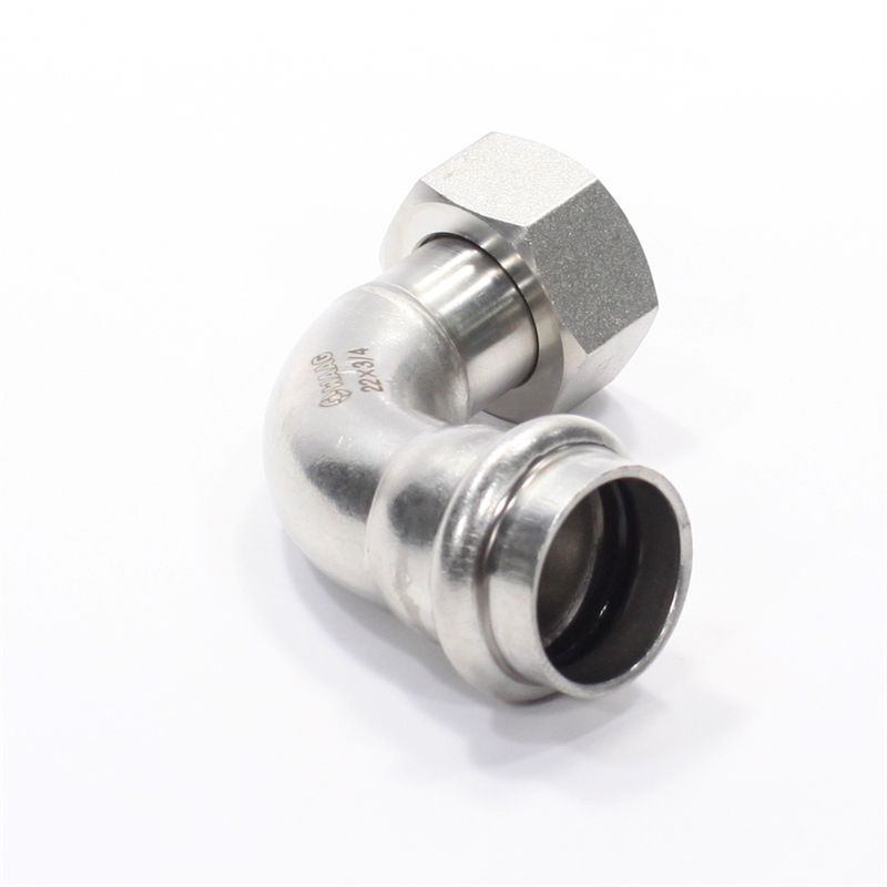 Пресс-угольник из нержавеющей стали с внутренней резьбой обеспечивает соединение тонкостенной стальной трубы с резьбовым элементом монтируемой системы под углом 90°. Область применения – трубопроводы водоснабжения, отопления, иные инженерные и технологические установки с рабочей температурой до 120 °С и давлением до 16 бар.