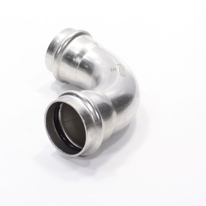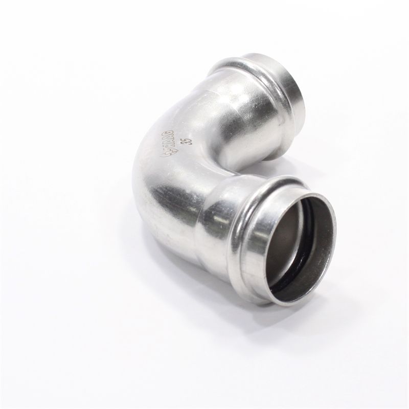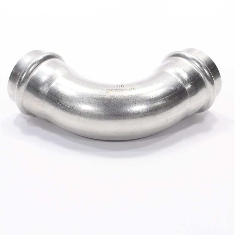 Двухраструбный пресс-угольник из нержавеющей стали обеспечивает соединение под углом 90° тонкостенных стальных труб систем водоснабжения, отопления, иных инженерных и технологических установок с рабочей температурой до 120 °С и давлением до 16 бар.