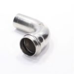Фитинг – угольник для соединения труб под углом 90°. Благодаря бесштуцерной конструкции соединитель обладает малым коэффициентом местного сопротивления – сужение канала практически отсутствует. Фитинг рассчитан на обжатие с помощью пресс-инструмента V-профиля.