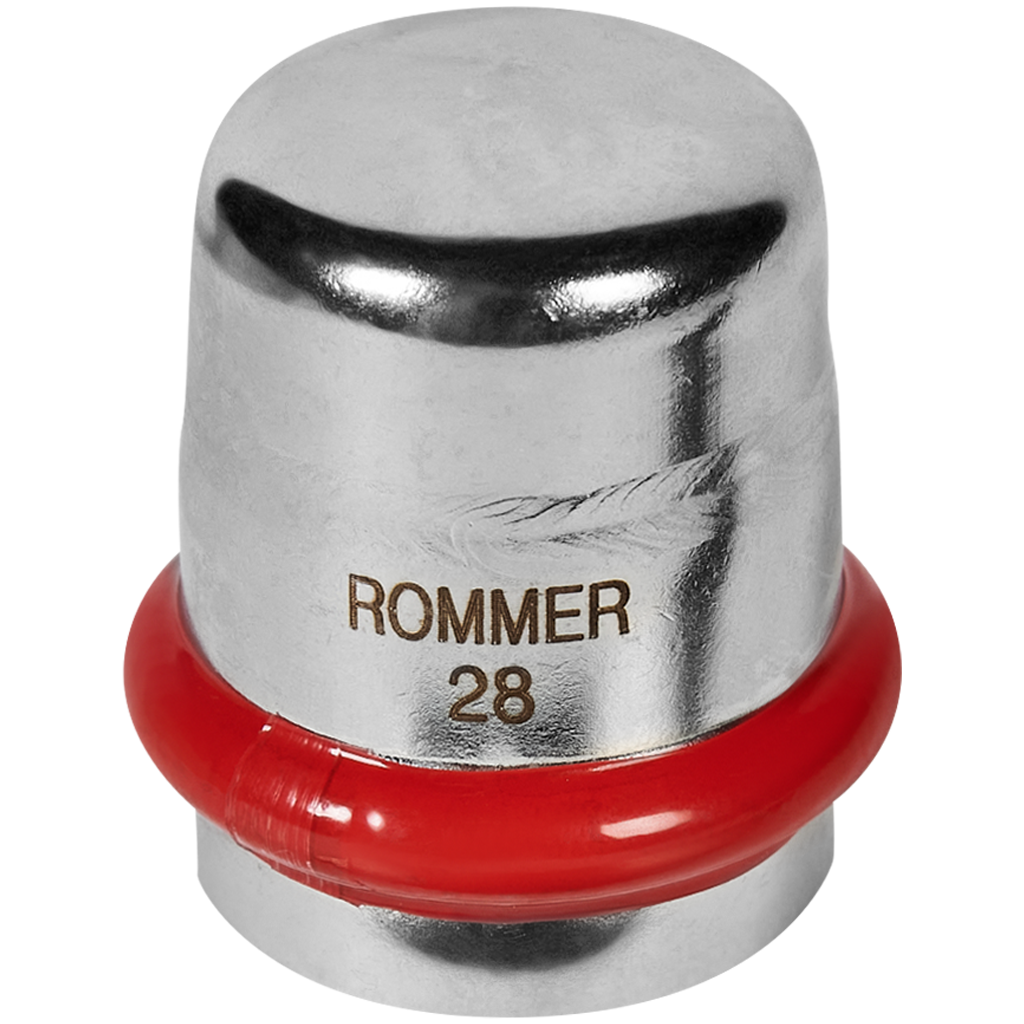 Заглушка изготовлена из стали AISI 304. Материал уплотнения – эластомер EPDM. Уплотнение EPDM, установленное в пресс-фитинг WAAG оснащено уникальным индикатором прессования, которое показывает неопрессованное соединение. Такое соединение будет не герметично (протекать) под давлением от 0,1 до 6,0 бар, поэтому при установке необходимо убедиться, что труба полностью вставлена в фитинг.