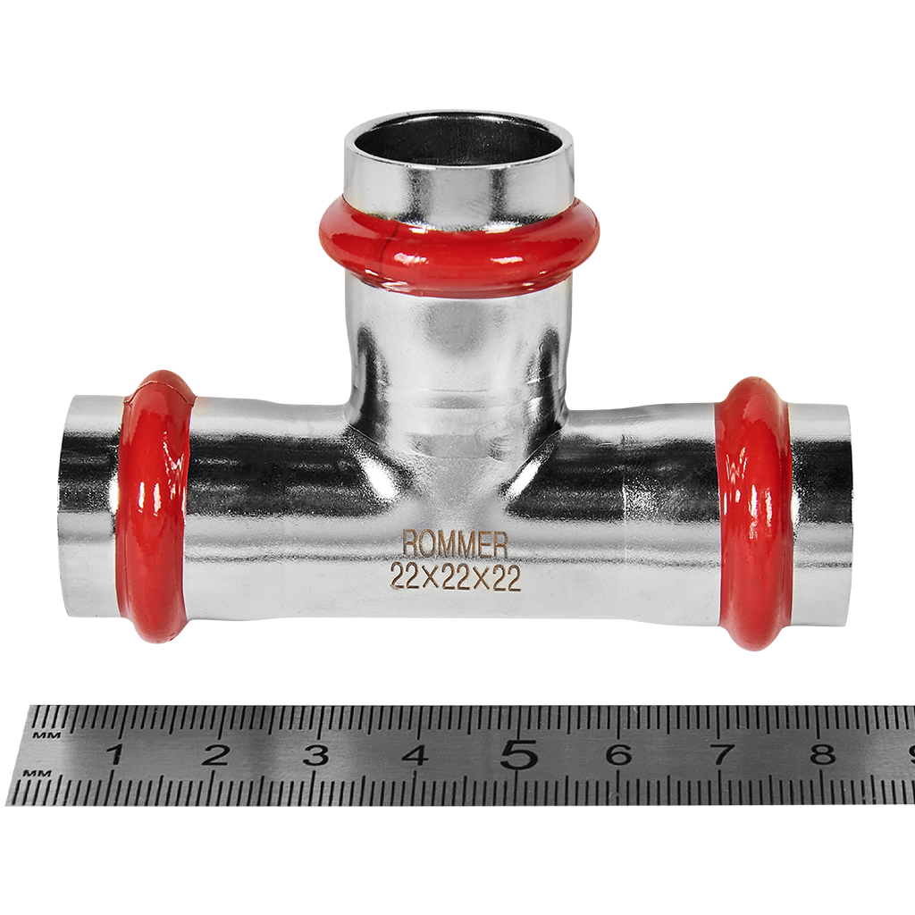 RSS-0013-000022 ROMMER Тройник равнопроходной ВПр, 22, из нержавеющей стали прессовой