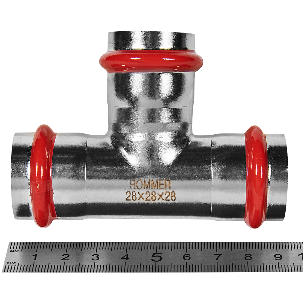 RSS-0013-000028 ROMMER Тройник равнопроходной ВПр, 28, из нержавеющей стали прессовой