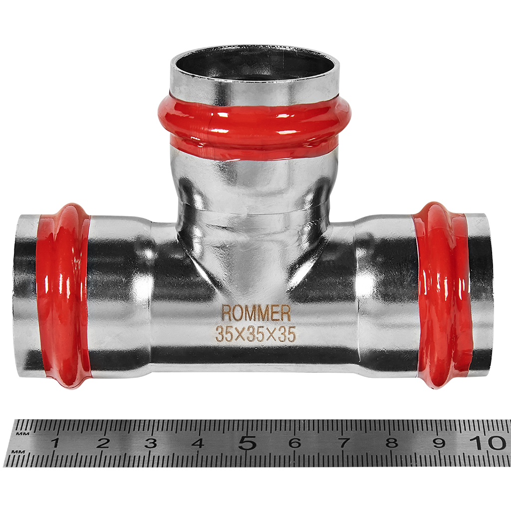 RSS-0013-000035 ROMMER Тройник равнопроходной ВПр, 35, из нержавеющей стали прессовой