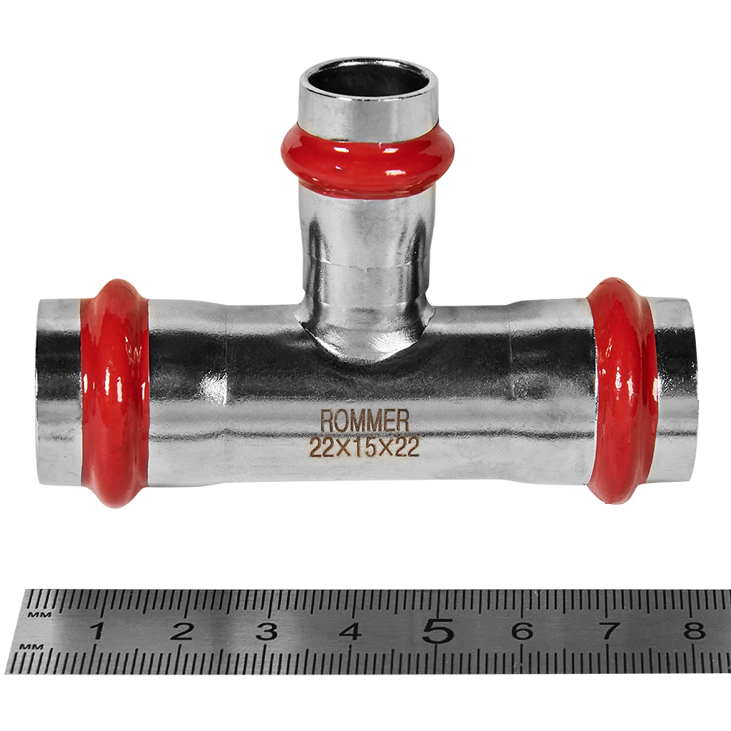 RSS-0014-221522 ROMMER Тройник переходной ВПр, 22х15х22, из нержавеющей стали прессовой