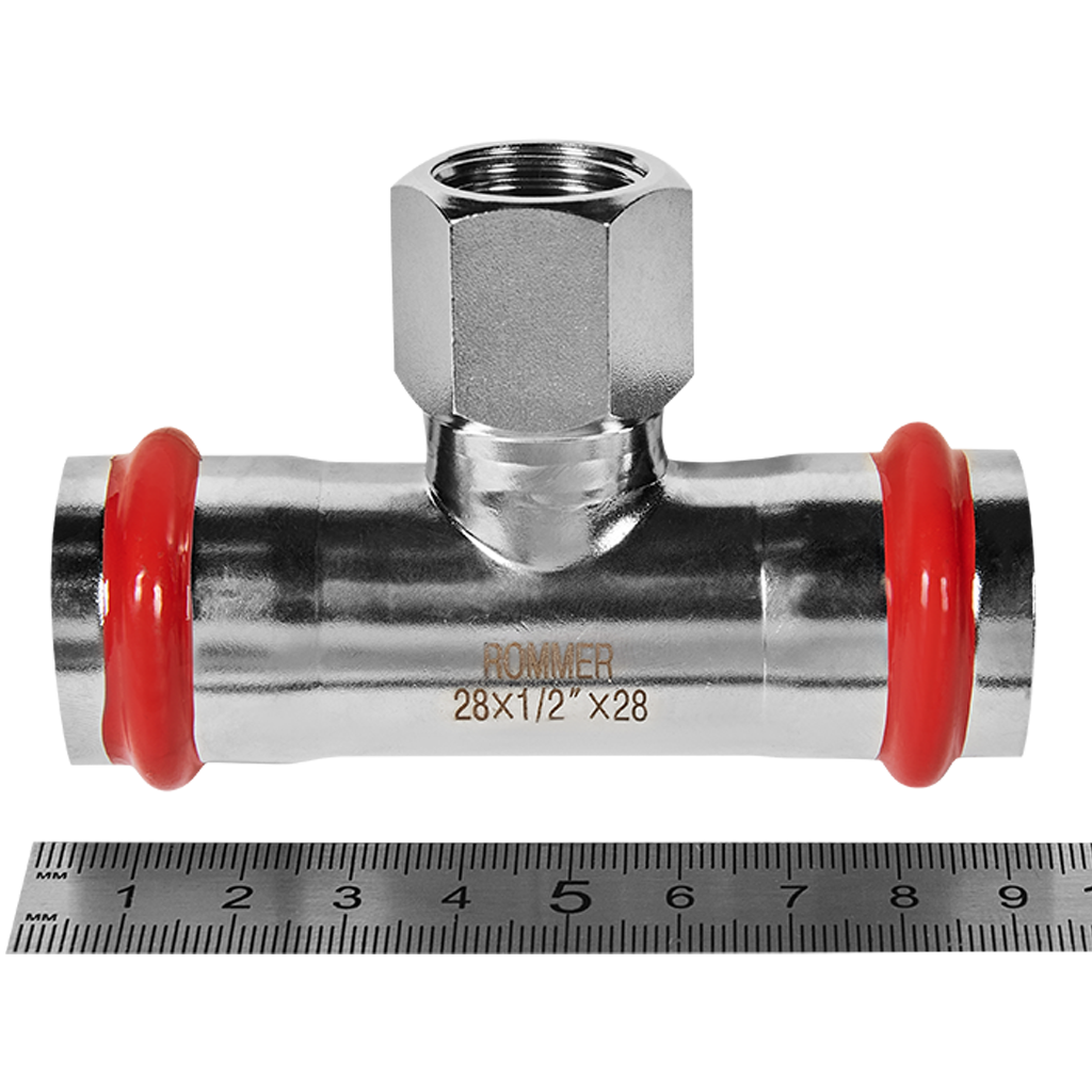 RSS-0015-002812 ROMMER Тройник-переходник ВПр-ВР, 28х1/2, из нержавеющей стали прессовой