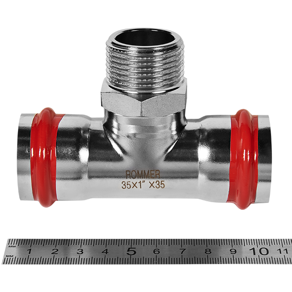 RSS-0016-000351 ROMMER Тройник-переходник ВПр-НР, 35х1, из нержавеющей стали прессовой