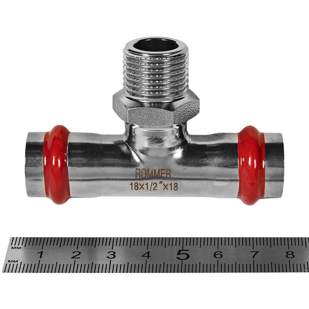 RSS-0016-001812 ROMMER Тройник-переходник ВПр-НР, 18х1/2, из нержавеющей стали прессовой