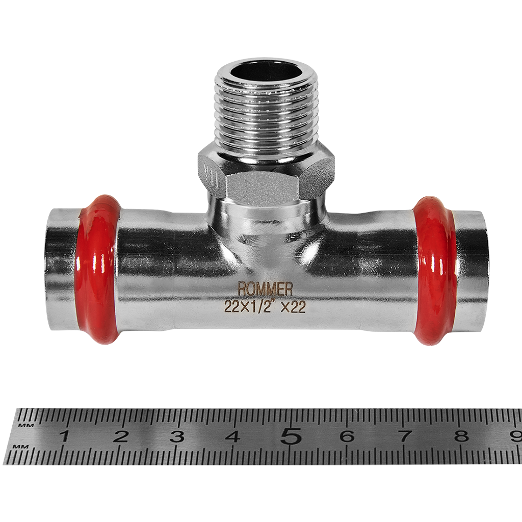 RSS-0016-002212 ROMMER Тройник-переходник ВПр-НР, 22х1/2, из нержавеющей стали прессовой