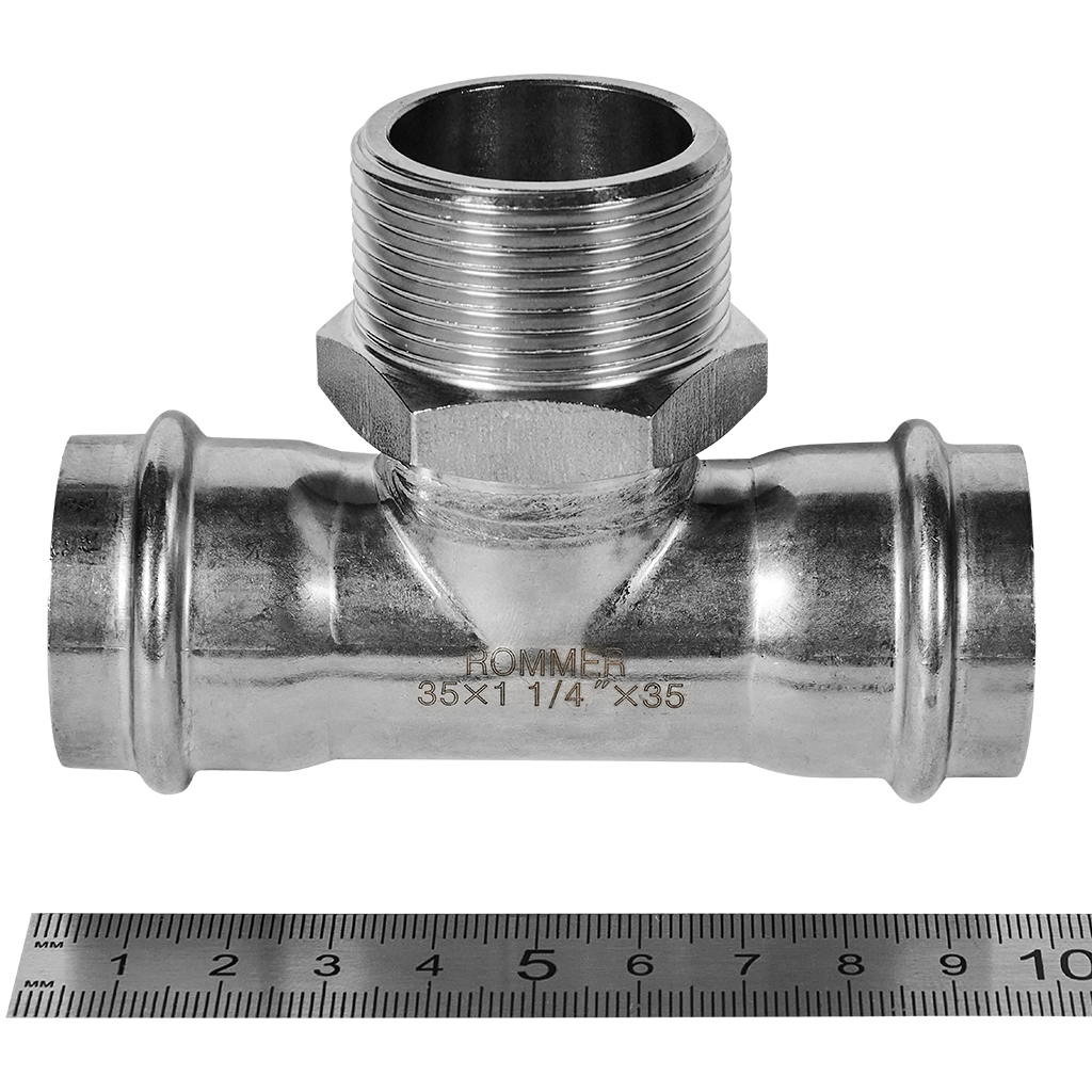 RSS-0016-035114 ROMMER Тройник-переходник ВПр-НР, 35х11/4, из нержавеющей стали прессовой