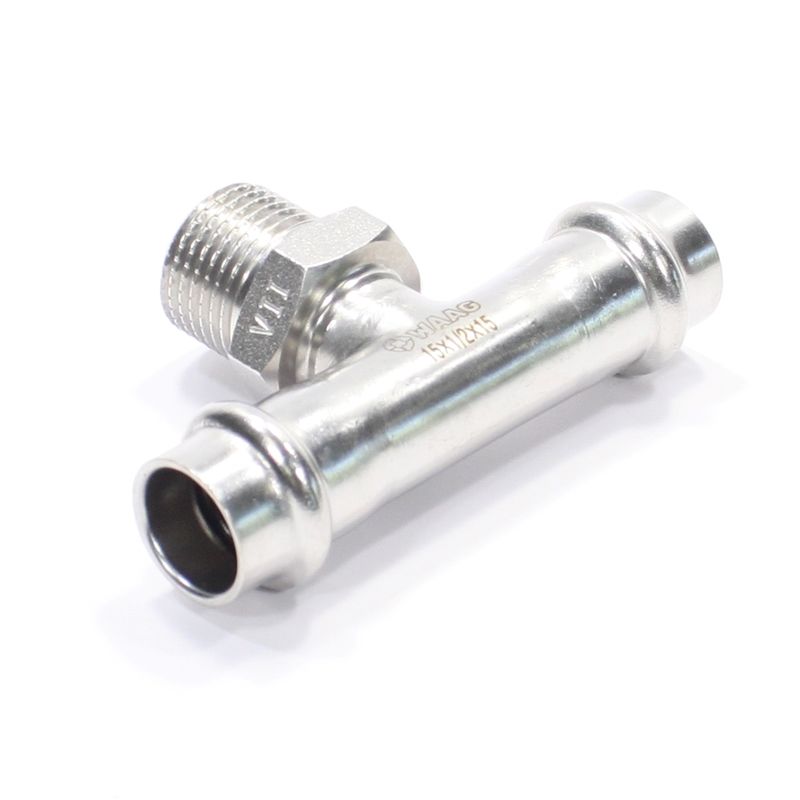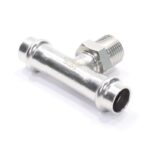 Пресс-тройник из нержавеющей стали с наружной резьбой предназначен для соединения тонкостенных стальных труб с резьбовым элементом системы водоснабжения, отопления, других инженерных и технологических установок. Фитинг рассчитан на эксплуатацию при максимальной рабочей температуре 120 °С. Номинальное давление – 16 бар.