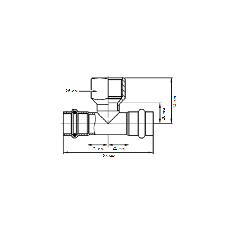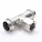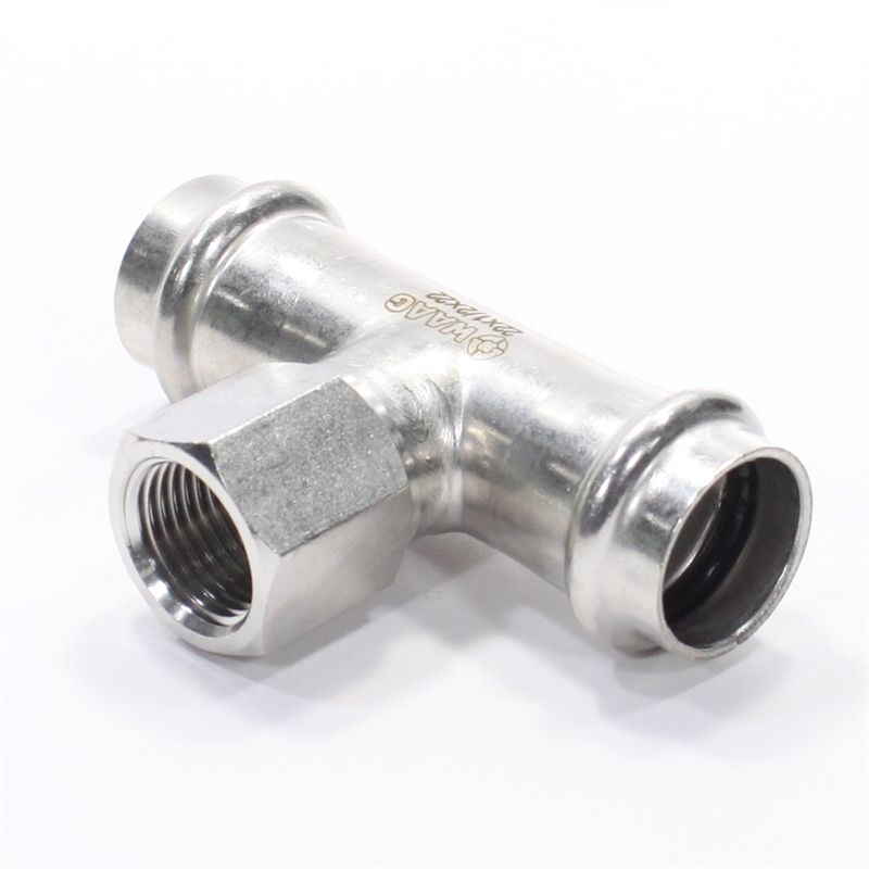 Пресс-тройник из нержавеющей стали с внутренней резьбой предназначен для соединения тонкостенных стальных труб с резьбовым элементом системы водоснабжения, отопления, других инженерных и технологических установок. Фитинг рассчитан на эксплуатацию при максимальной рабочей температуре 120 °С. Номинальное давление – 16 бар.