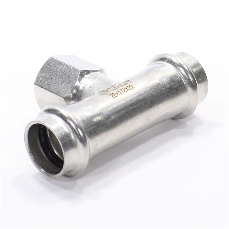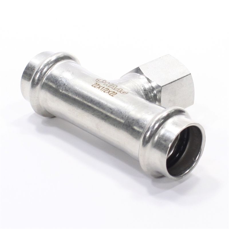 Тройник 22-1/2″-22, WAAG Heavy Inox, пресс-резьба, вн., сталь нержавеющая WG.932.I.220422