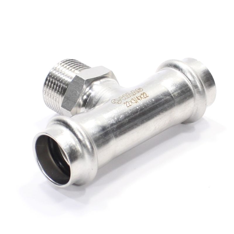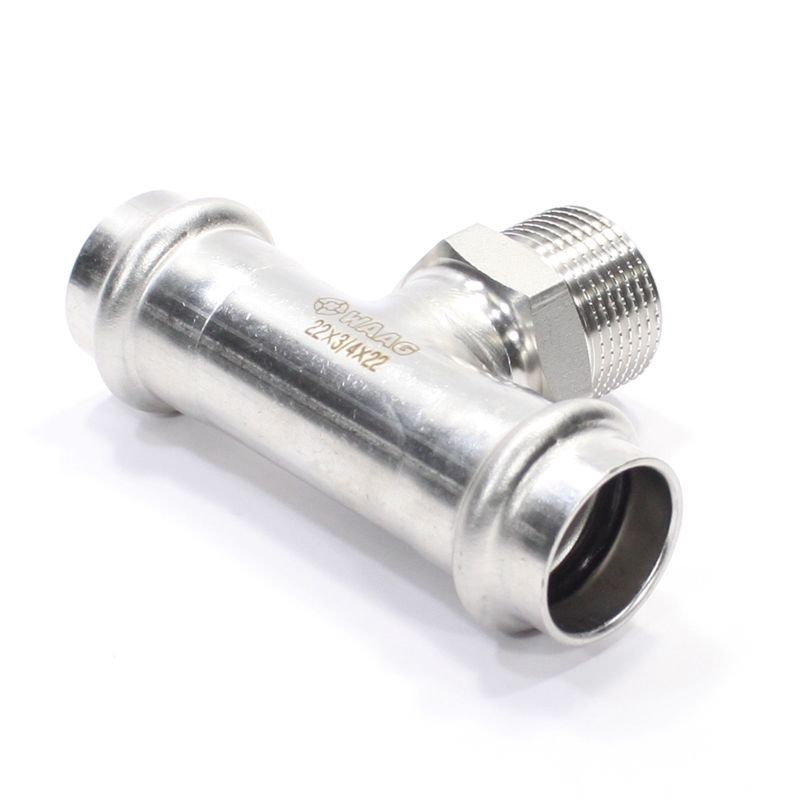 Тройник 22-3/4″-22, WAAG Heavy Inox, пресс-резьба, нар., сталь нержавеющая WG.933.I.220522