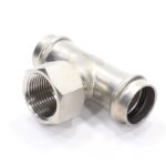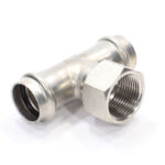Пресс-тройник из нержавеющей стали с внутренней резьбой предназначен для соединения тонкостенных стальных труб с резьбовым элементом системы водоснабжения, отопления, других инженерных и технологических установок. Фитинг рассчитан на эксплуатацию при максимальной рабочей температуре 120 °С. Номинальное давление – 16 бар.
