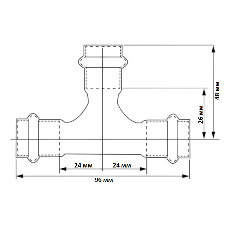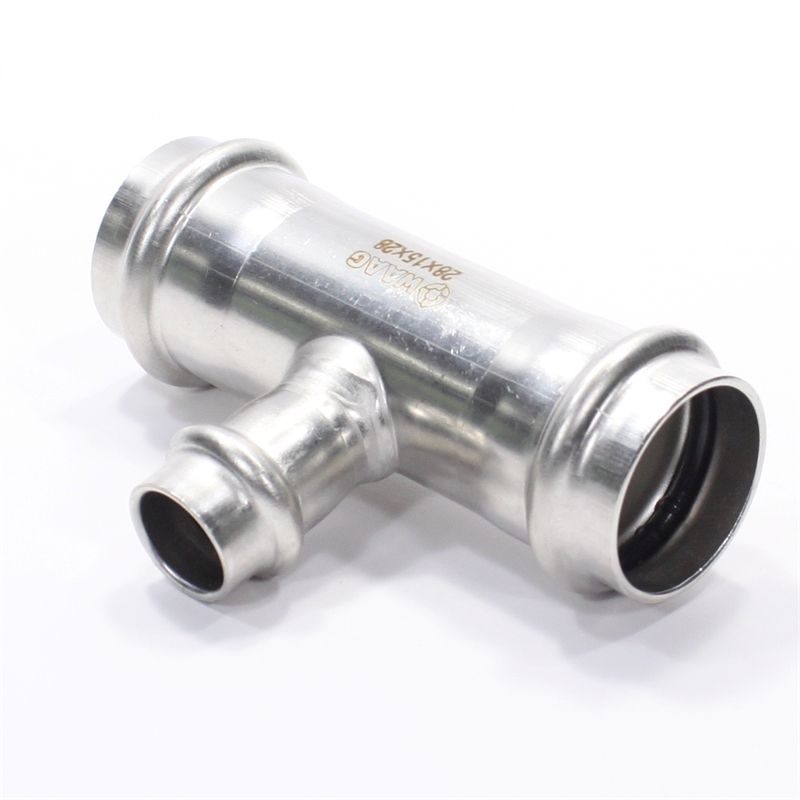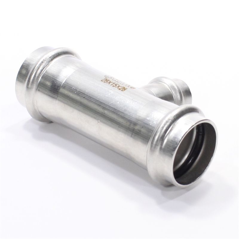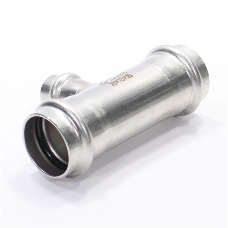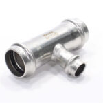 Трехраструбный пресс-тройник из нержавеющей стали обеспечивает соединение трех тонкостенных стальных труб систем водоснабжения, отопления, иных инженерных и технологических установок с рабочей температурой до 120 °С и давлением до 16 бар.